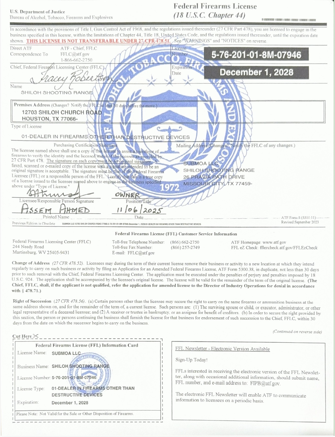 The seller will need our Federal Firearms License.